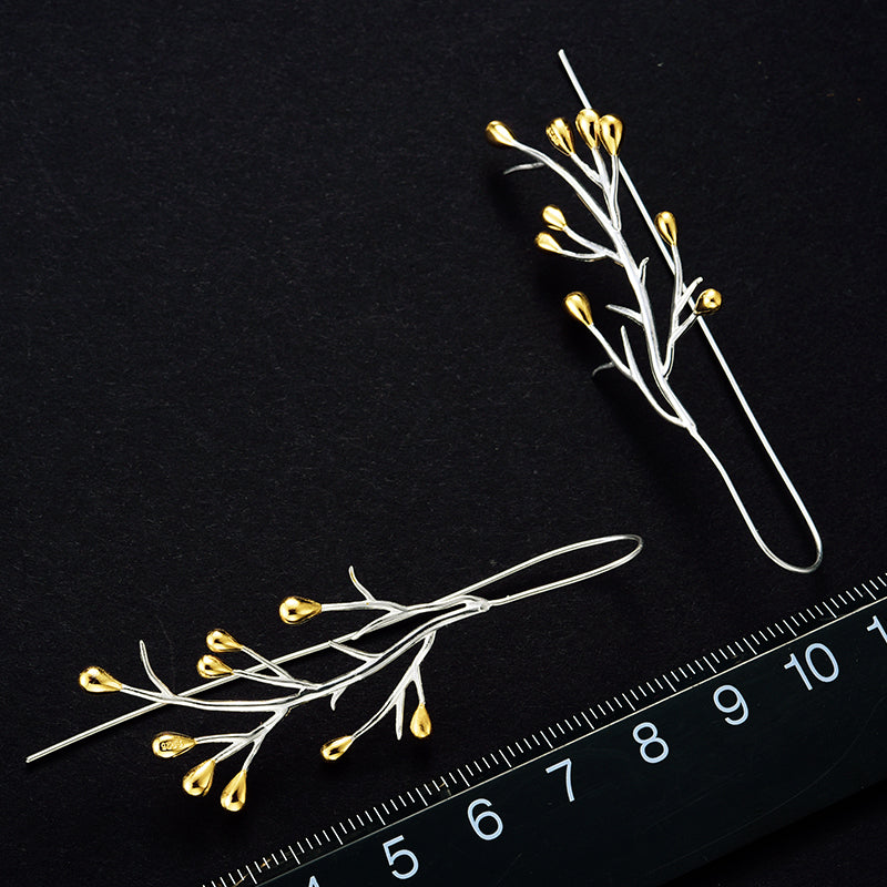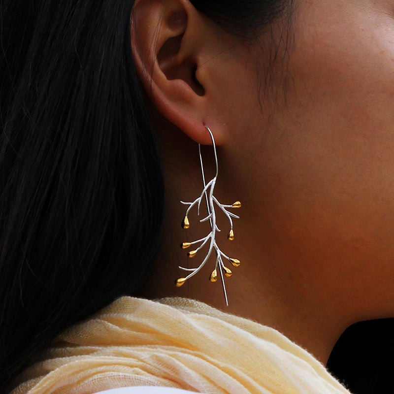 Autumn Tree Branch Earring, the gorgeous sterling silver earring is one of our best works. The craftsmanship can be seen through the fantastic curvature of the branches, seemingly growing from your earlobes.