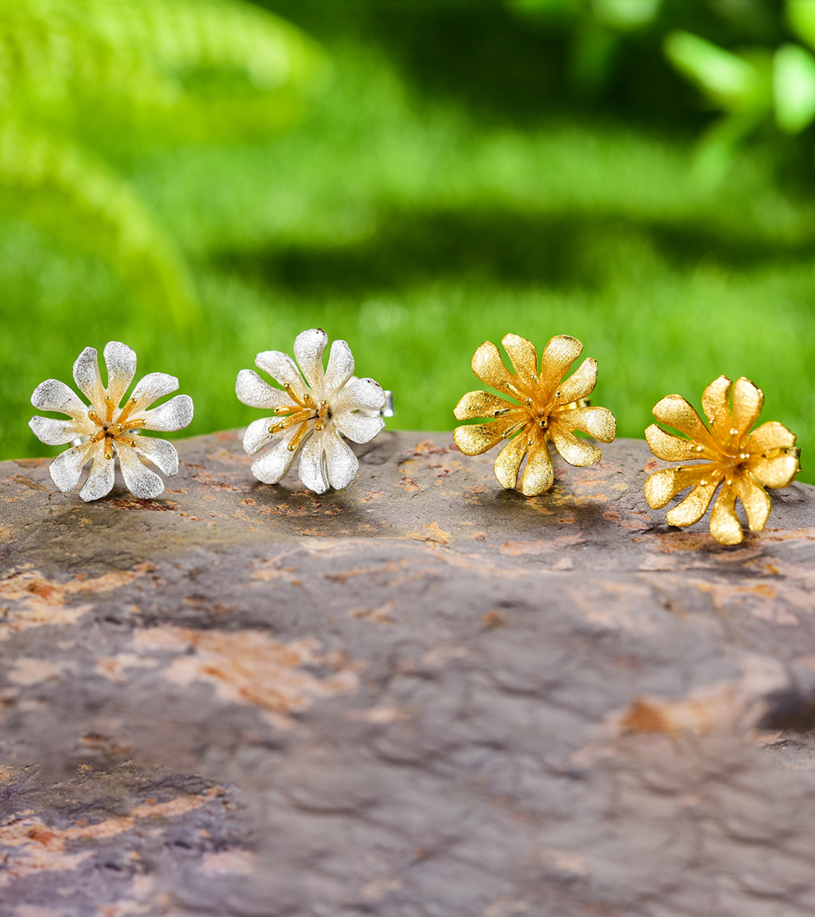 Embrace the radiant beauty of nature with our Blooming Tiny Flowers Earrings. Inspired by the vibrant allure of sunflowers, these exquisite stud earrings are crafted from high-quality silver, offering a timeless elegance that complements any style.
