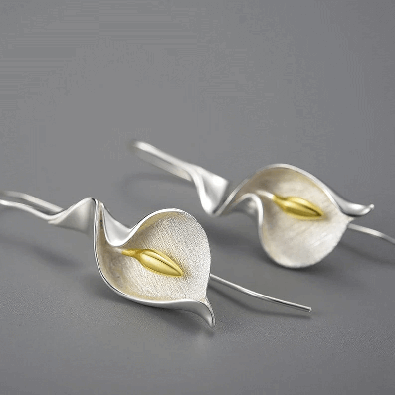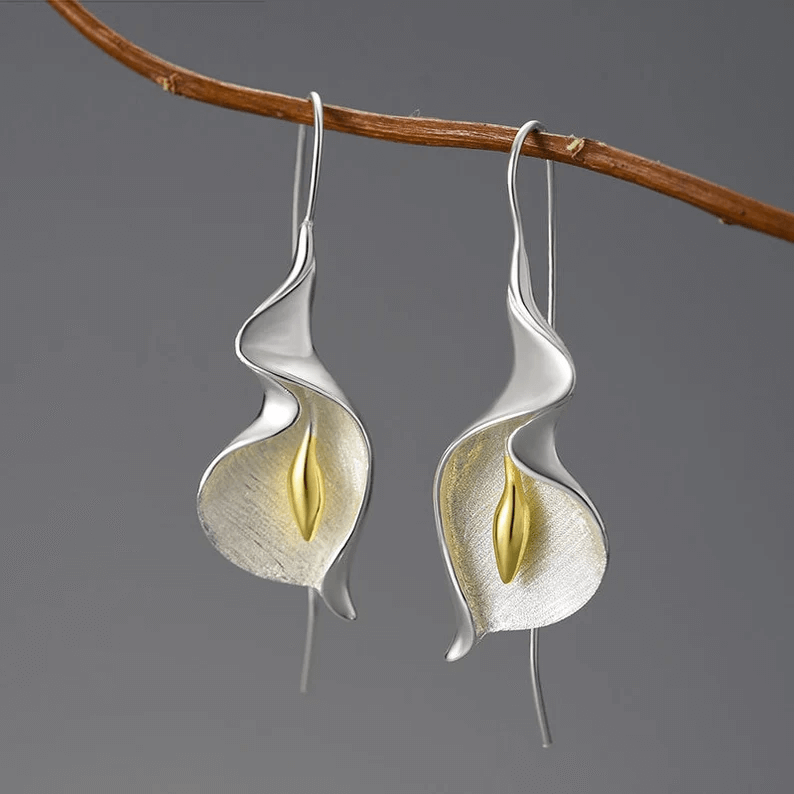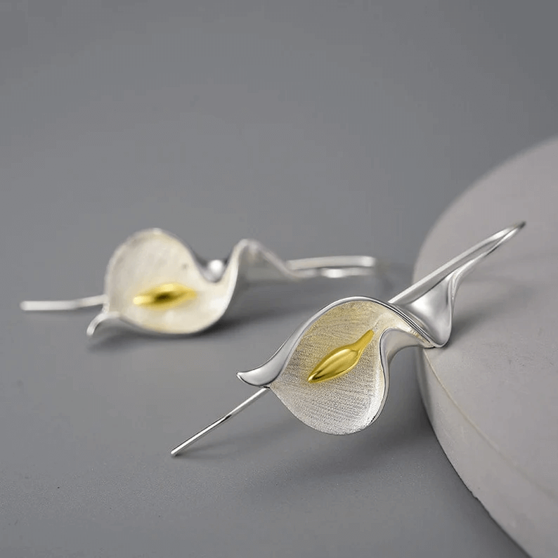 Adorn yourself with the delicate elegance of the Calla Lily Flower Dangle Earrings. Inspired by the timeless beauty of calla lilies, these earrings offer a sophisticated touch to any ensemble, perfect for both everyday wear and special occasions.