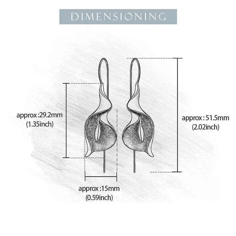 Adorn yourself with the delicate elegance of the Calla Lily Flower Dangle Earrings. Inspired by the timeless beauty of calla lilies, these earrings offer a sophisticated touch to any ensemble, perfect for both everyday wear and special occasions.